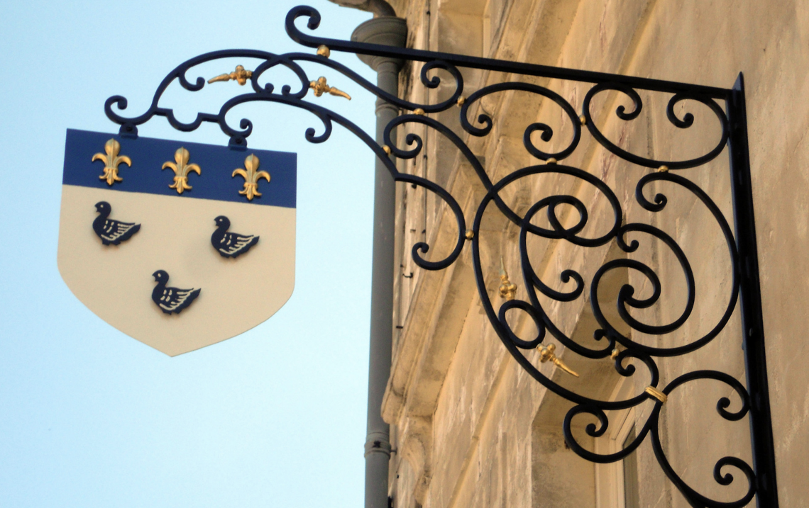 Au Moyen Age, chaque maison disposait d’une appellation et d’une enseigne, et on désignait naturellement un logis par son enseigne…L’enseigne en fer forgé, trouve son âge d’or sous Louis XV, au cours de la période baroque, avec de nouveaux principes d’ornementations, triomphe de l’asymétrie, des volutes, des rondeurs, de même sur le travail en tôle repoussée dans un monde de fleurs et de feuilles, ou de formes minérales de concrétion et de coquillage de l’esprit Rocaille.